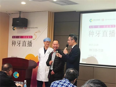 2019年12月25日下午14:30,由东莞口腔医院联合东莞广播电视台、东莞日报、东莞阳光网举办的第五届“种牙直播”科普活动在东莞口腔医院5楼学术交流会议中心盛大举行!为了让更多没能参与到现场活动的市民也能目睹缺牙“重生”,获取种植牙的相关知识,了解种植牙的优势及特点,本次活动通过由东莞广播电视台“知东莞”客户端进行了全程实时直播以及东莞阳光网进行了图片实时直播,与身处不同地方的市民朋友分享今天的活动内容。