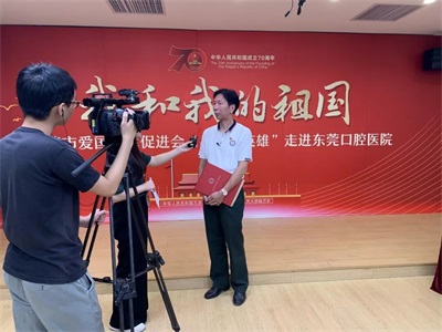 据东莞市爱国拥军促进会副会长兼秘书长卢普润同志介绍:2019年8月16日,中共办公厅、国务院办公厅印发了《关于隆重庆祝中华人民共和国成立70周年广泛组织开展“我和我的祖国”群众性主题宣传教育活动的通知》,对庆祝中华人民共和国成立70周年群众性主题宣传教育活动作出安排部署。医疗服务,与广大市民的生活息息相关,此次“我和我的祖国——东莞市爱国拥军促进会‘身边的英雄’走进东莞口腔医院”活动是全市医疗服务单位的典范,希望活动对全市医疗服务人员有所启发,医疗单位扎根社区,服务基层市民,更需要树立全心全意为人民服务的信念,希望东莞口腔医院党建工作再接再厉,以更加优异成绩回报祖国,回报人民。
