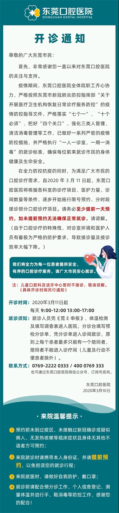 开诊啦|东莞口腔医院将于3月11日正式预约开诊!