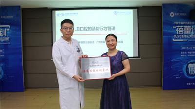 此次“蓓蕾计划”乳牙预成冠规范化培训班所使用的材料由松风齿科器材(上海)有限公司提供,为感谢其对课程的大力支持,曾素娟博士代表中国牙病防治基金会为其公司负责人颁发了感谢状。