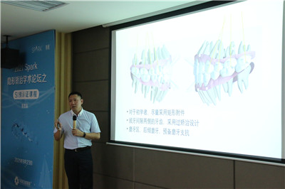 大会主席袁东辉教授在开场致辞中,分享了自己在临床中使用Spark隐形矫治器的感受。袁东辉教授提到Spark隐形矫治器附件的设计有它的独到之处,这让医生的操作更加便利,它的包裹性、弹性、抗染色性也表现优秀。此外,还表达了对隐形矫治技术发展前景的展望,以及对科室年轻医生寄予厚望。