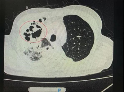 钟叔的肺部被病原体蚕食,啃出无数个大小各异的洞。
