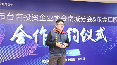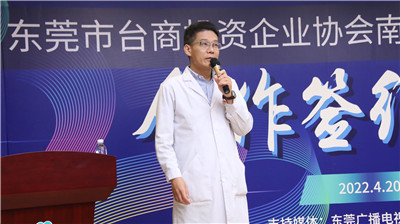 ▲东莞市台商投资企业协会南城分会会长何俊儒讲话
