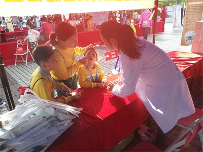 在现场,我们不难看到东莞口腔医院的医生们义诊的身影,东莞口腔医院,立志希望能让东莞人民享受到健康完美的生活,绽放美丽笑容,因此早早前来莞城文化广场提前准备,为各位前来参与万米长跑比赛的志愿者们做口腔健康检查。