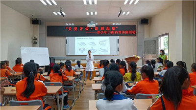 4月7日,东莞口腔医院与中堂镇莞香花青少年服务中心携手走进中堂朝阳学校,开展“关爱牙齿,即刻起航”——青少年口腔科普讲座活动,共有110名四年级同学来到现场听讲。