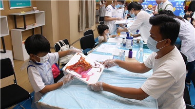 在流体画创作结束后,东莞口腔医院的工作人员开展了口腔健康课堂,为大家讲解了口腔健康知识,然后带领小朋友们到儿童口腔体验当一名小小牙医,在医生的指导下为家长检查口腔,还获得了小牙医毕业证书。儿童节来临之际,希望每位小朋友都能好好爱护牙齿,健康快乐成长。