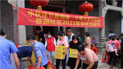 9月13日上午,在中秋佳节来临之际,东莞口腔医院党支部联合雅园社区党委走进雅园社区开展了“我为群众办实事”中秋节日慰问活动。