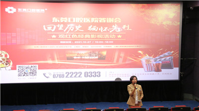 10月以来,东莞口腔医院全面开展2021年‘敬老月’活动,大力弘扬中华民族尊老、敬老、爱老的传统美德,引导全社会关爱老年人口腔健康并落实好相关老年优待政策,让老年人共享改革发展成果,乐享幸福晚年。此次红色经典观影展,不仅仅是让群众了解军人为国家和人民前赴后继、不畏生死的英勇事迹,还在于为老年人提供多种形式的福利,让他们“老有所乐”,享受健康快乐生活。接下来我院将在党支部的指导下,紧紧围绕“为群众办实事”的工作理念,持续开展多样化的老年人口腔健康宣教活动,实施多项老年人就诊优惠政策,为国家老龄事业发展贡献力量。