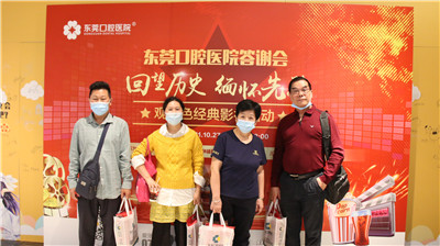 10月27日,为弘扬伟大民族精神和时代精神,感受家国情怀,追寻红色记忆,同时积极倡导树立尊老、敬老、爱老的文明新风尚,东莞口腔医院举办了2021年“敬老月”观影活动,邀请老年人前往电影院一同观赏红色电影《长津湖》,并为所有来宾送上油米礼包。