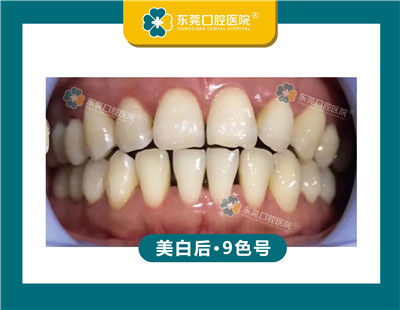 而且陈女士的美白效果也非常明显,仅仅做了一次美白,牙齿就从21色号降到9色号。如果对牙齿有更高的要求,想要拥有靓丽白、明星白,根据医生建议完成后续的疗程就可以了。