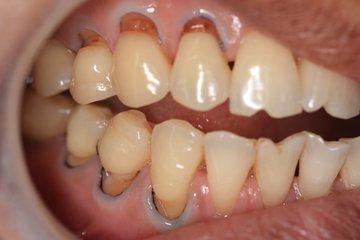 牙周炎到中晚期的时候了牙糟骨的吸收导致牙龈萎缩,牙根在外面暴露,从而失去保护牙齿的作用,在温度的刺激下容易有敏感的症状,感觉到牙齿酸软,在吃东西时候感觉到明显的无力。