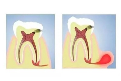 牙髓,俗称“牙神经”,当龋病没有及时治疗,进一步腐蚀破坏牙体硬组织,外界细菌与处于牙齿中央的牙髓接触,牙髓受到感染引发牙髓炎。
