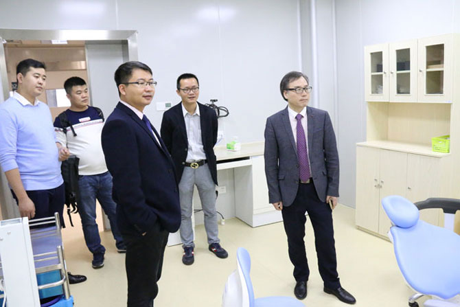 罗智斌教授在东莞口腔医院领导陪同下参观医院,并对我院先进设备设施给予高度的评价。