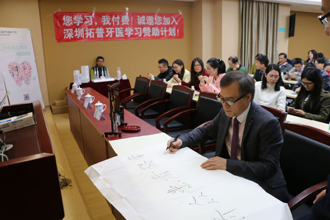 罗智斌教授即兴为东莞口腔医院题词“博爱济众,患者自己我院全体医护工作人员奋斗终生的事业。