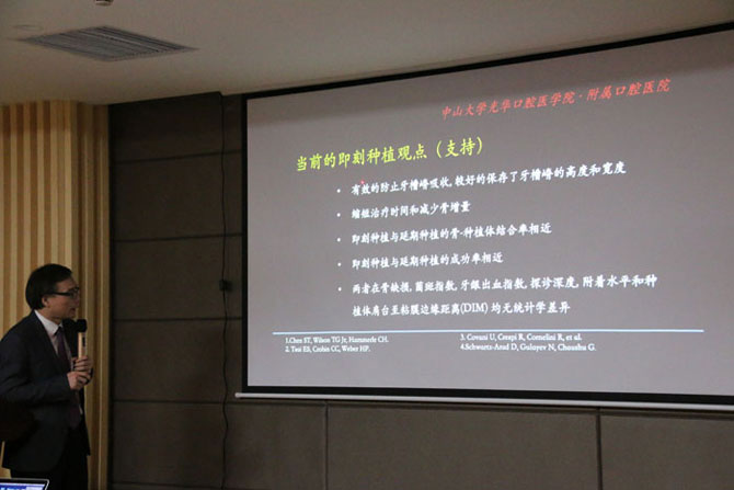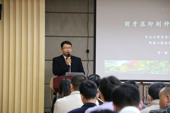罗智斌教授就“前牙区即刻种植,无牙颌即刻负重”进行了细致的讲解。罗智斌教授自1994年开始口腔种植修复,迄今已完成口腔种植病例4000余,在前牙美学区的即刻种植即刻修复、无牙颌的种植修复等方面具有丰富的临床经验。