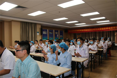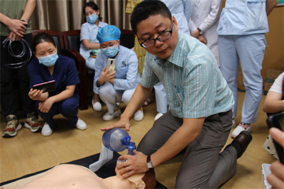 授牌仪式结束后,正式开始“院前急救和高级生命支持”培训。广义的院前急救是指患者在发病时由医护人员或目击者在现场进行的紧急抢救;高级生命支持是指由专业医务人员在心搏呼吸停止现场,或在向医疗单位转送途中进行的抢救。此阶段可能应用一些辅助设备、特殊技术等建立更为有效的通气和血运循环。