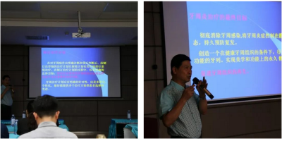 接着,由今天的主讲嘉宾张雄主任上台开始讲课,课程内容围绕牙周病的发展、牙周病治疗两大方面来开展。张雄主任列出多年累积下来的临床案例,向在座讲述牙周病常见的症状,细述牙周病的处理方案。